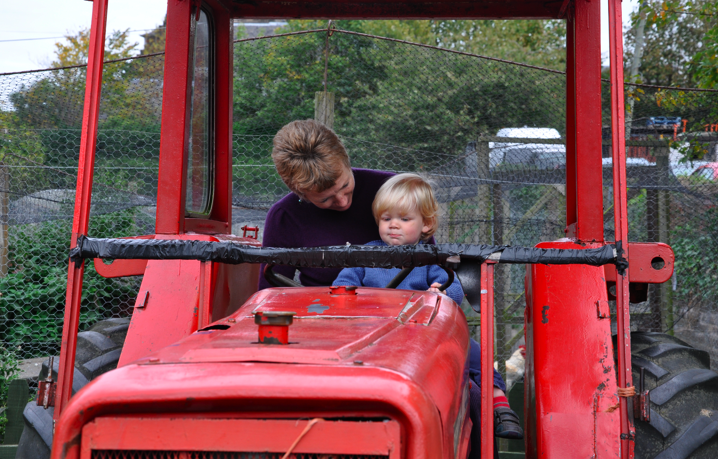 City Farm. DorkySon’s favourite place in the whole city. He’s pretty ambivalent about the pigs, the horse, and the rabbits. He doesn’t care much about the cow. But the tractor? The old, red tractor? He is ALL about that. (Especially when he gets to go and visit it with DorkyGranny…)