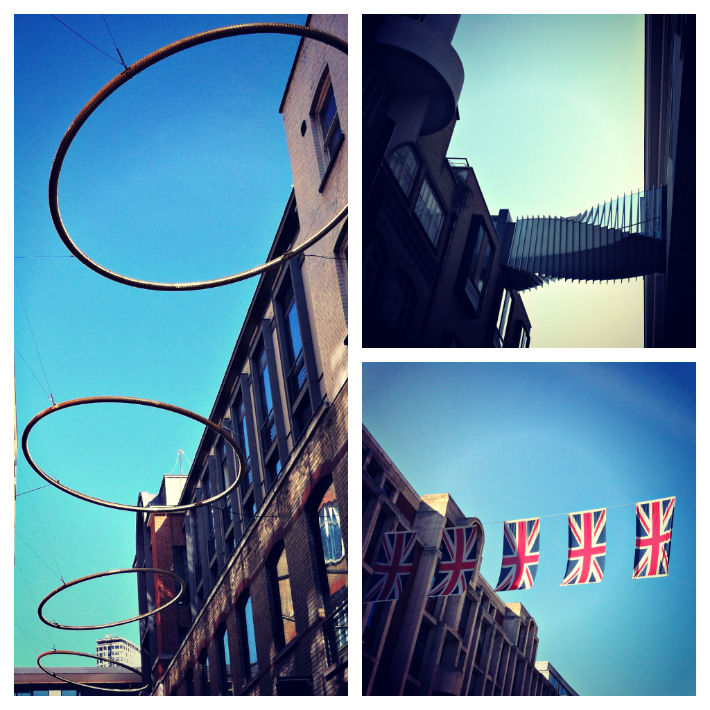 London street art Neal's YardThe atmosphere in Central London is wonderful just now. The sunshine helps, but so too do all the excited people on their way to watch Olympic events. The pride and excitement  – of spectators from every country – is infectious.